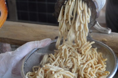 こちらはこどもたちも一緒にミンサーを使って潰しています