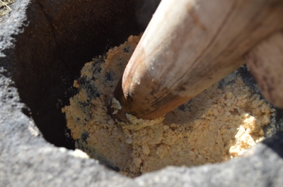 量が多いので、すり鉢やマッシュ棒を使って手分けしてすり潰します。