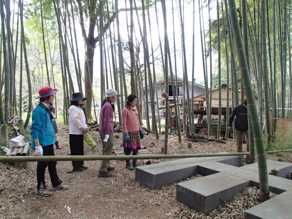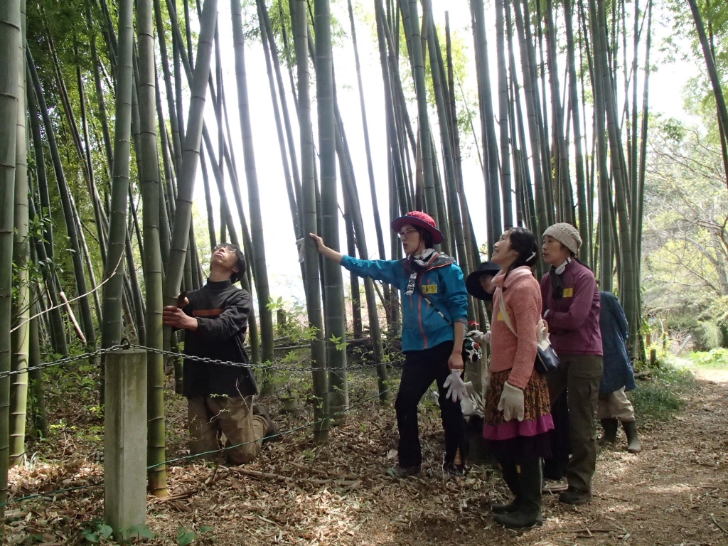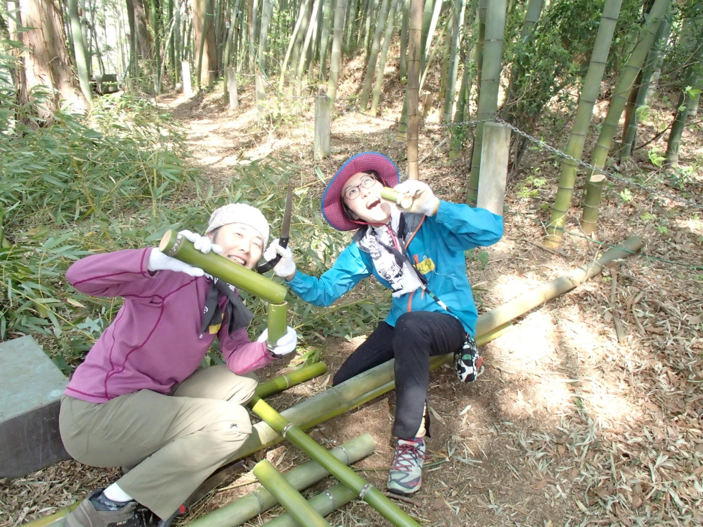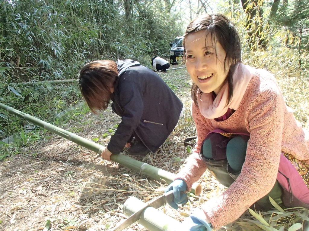 そんな話をして、実際に竹を切り倒してみました。参加者の女性人たちみな、竹を切るのも初体験なのでドキドキ!