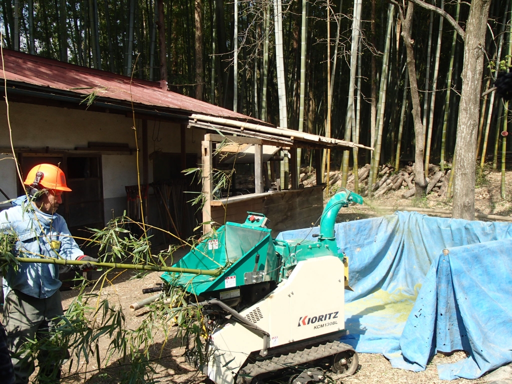 引き続き竹チッパーも稼働したのですが、太い竹は縦に割らなくてはなりませんでした。