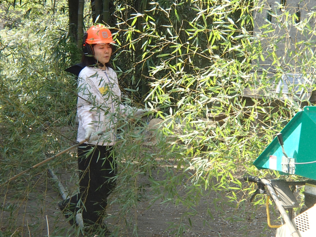 さわやかそうに見えるけど、竹を粉砕する音がかなり大きいので耳当てをしないと作業は困難です。