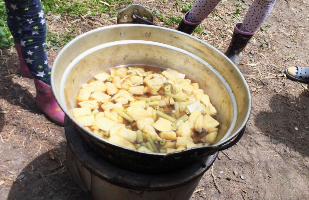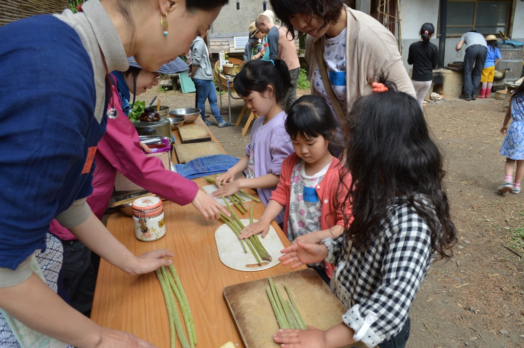 この後、各チームに分かれて、お昼のごはんを作ります。