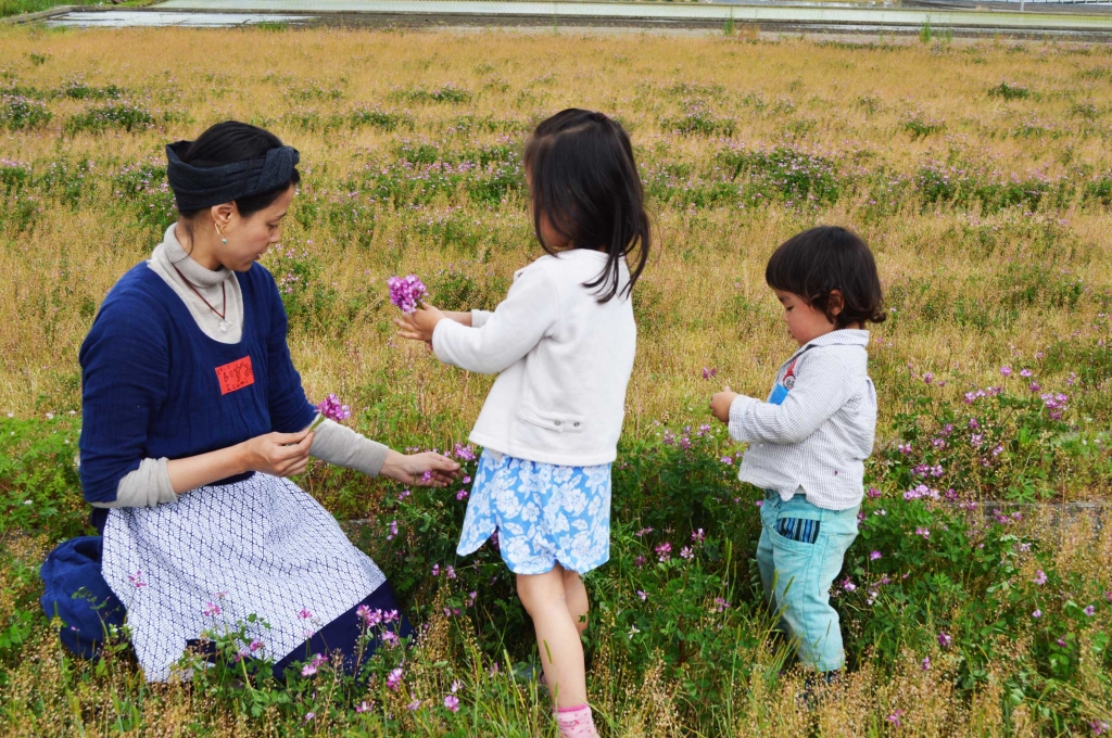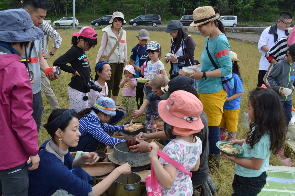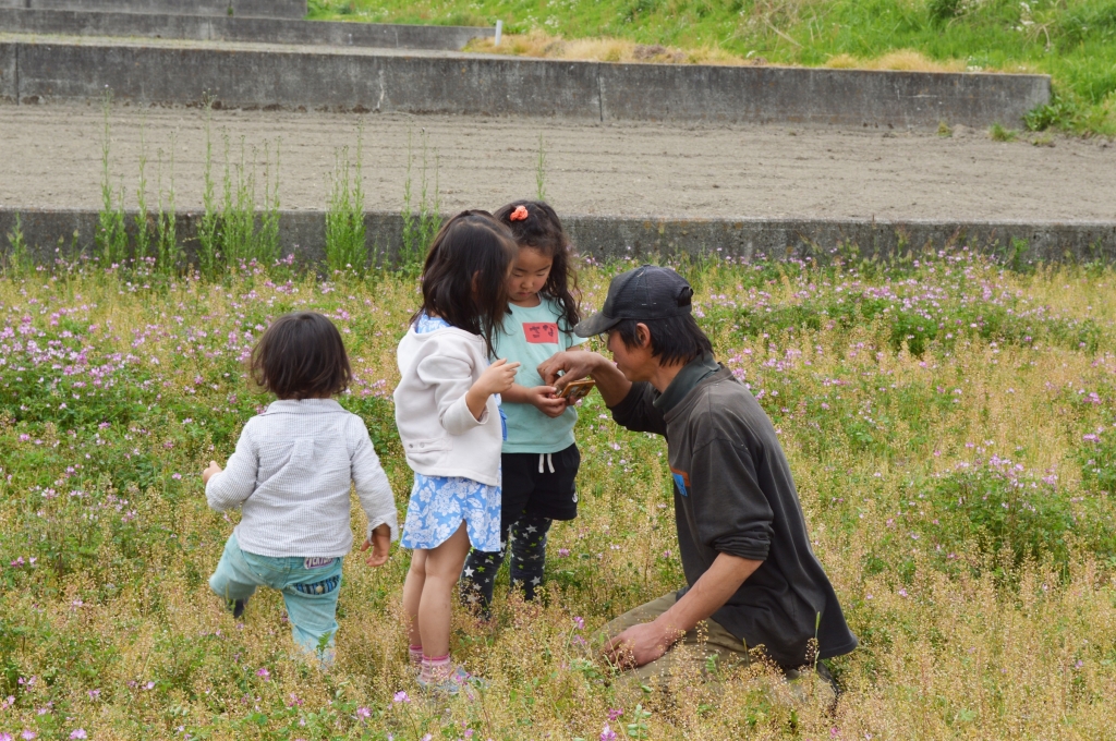 ごはんができあがった後は、みんなでれんげ田んぼに移動!