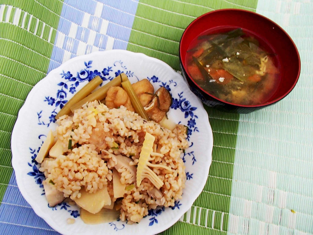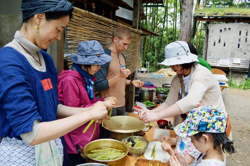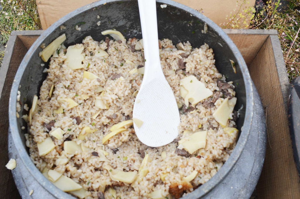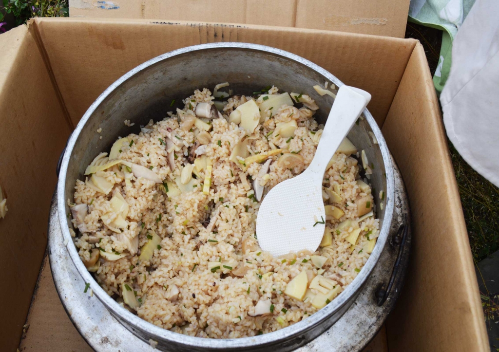 しいたけや油あげ、近くで採れた山菜なども切ってごはんに入れます。