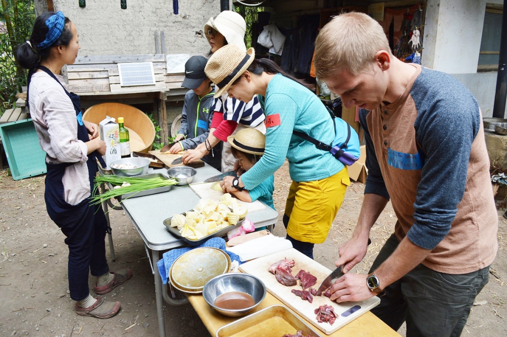 WWOOFで来ているアレックスはマイ包丁で鹿肉を捌いています。