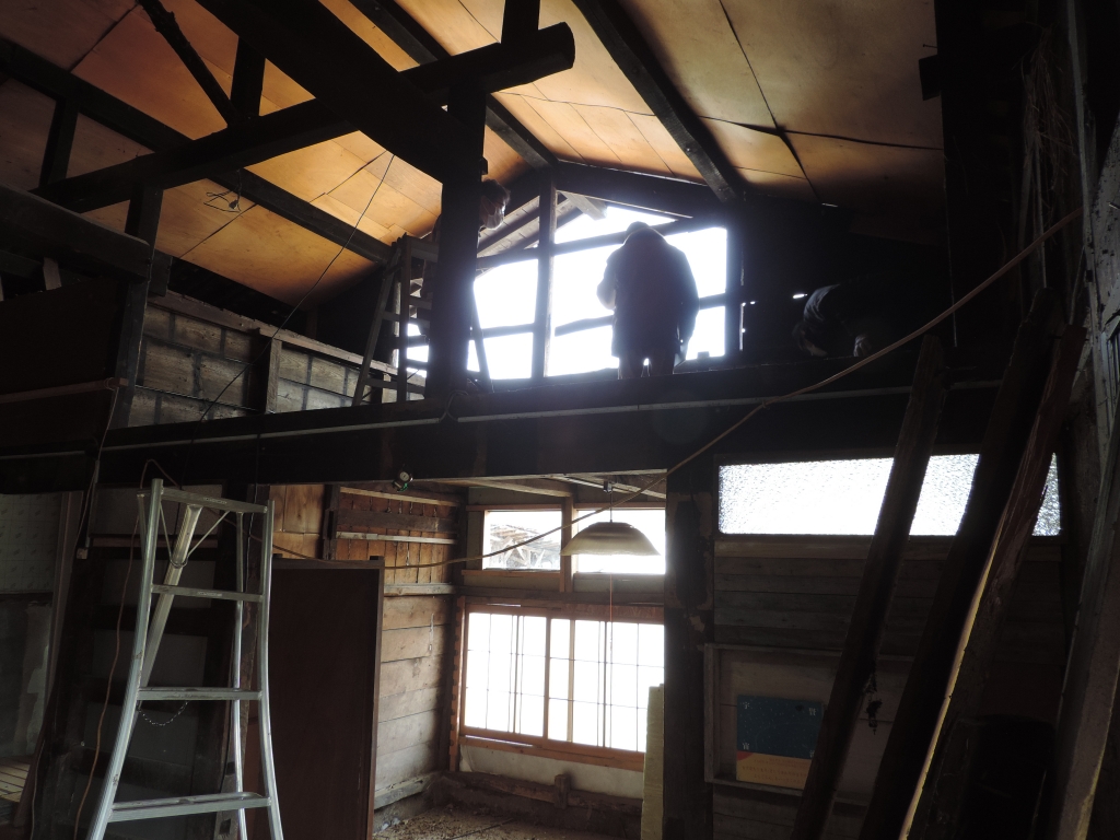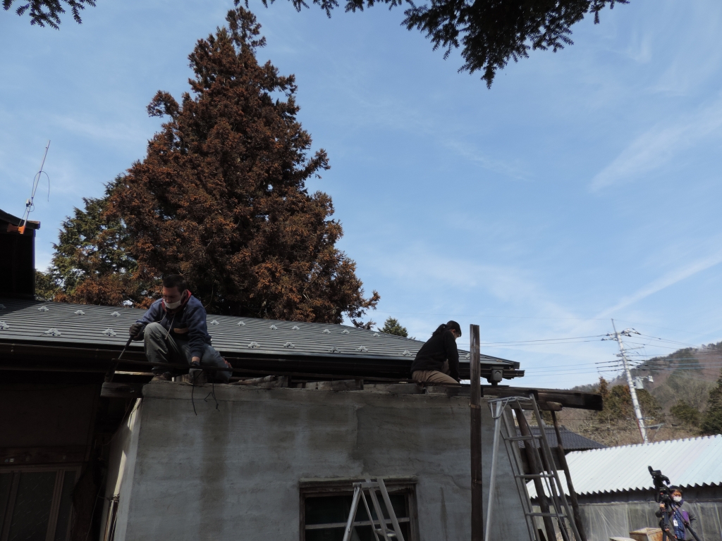 一方、外では軒を伸ばすべくトタン屋根の取り外し。
