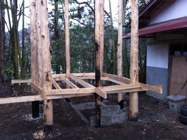 3回目となる今回のコンポストトイレづくりは建物の棟上げを行います。
