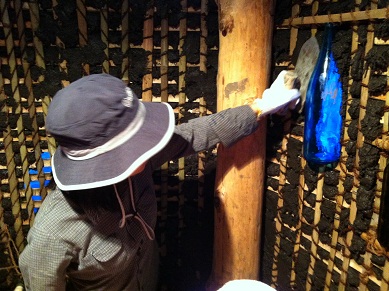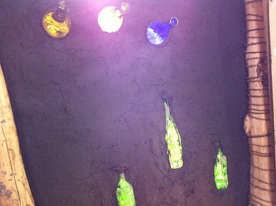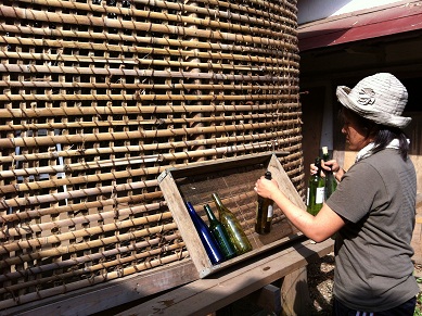 ボトルウォールとは、ガラス瓶を土壁に埋め込んで窓を作る事を言います。