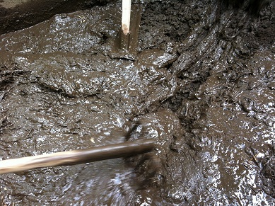皆で一生懸命踏みながら混ぜ込んでいきます。