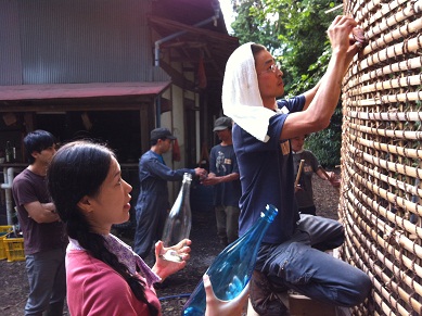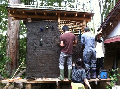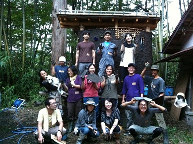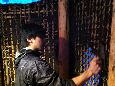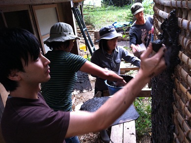 練習も終わり、ゲストの方と共に一斉に土壁を塗ります!!