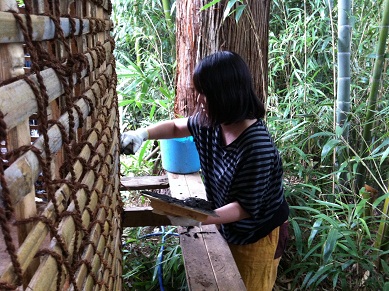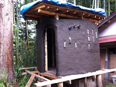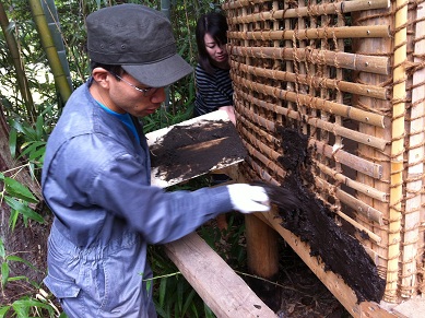 まずは先日のイベント時にあらかじめ作っておいた土壁用の土を完成させます。