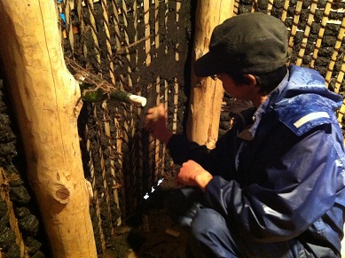 さて、こちらはボトルウォールを作る班です。