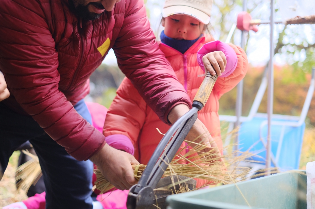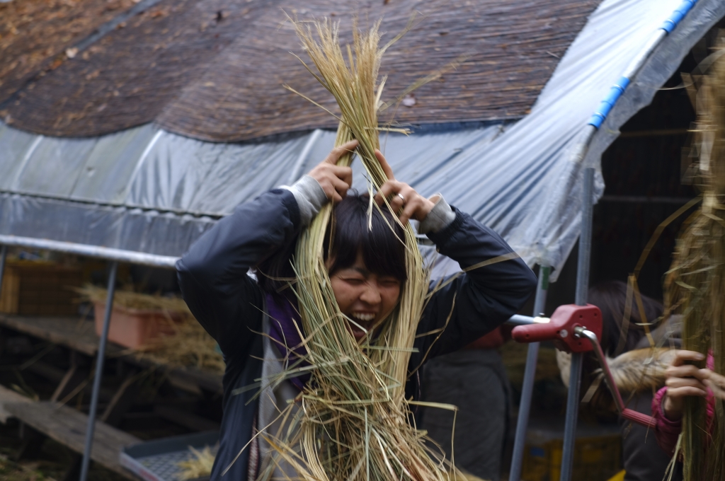 昔ながらかつアナログな方法での脱粒体験です。