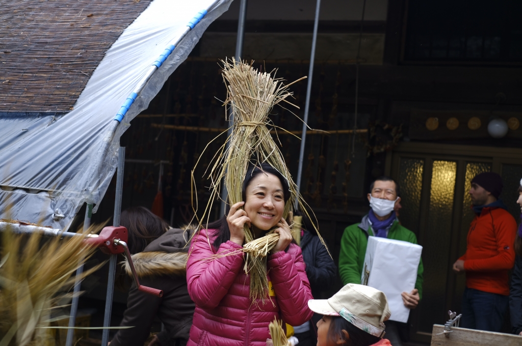 さっそく藁づと作りからスタート。