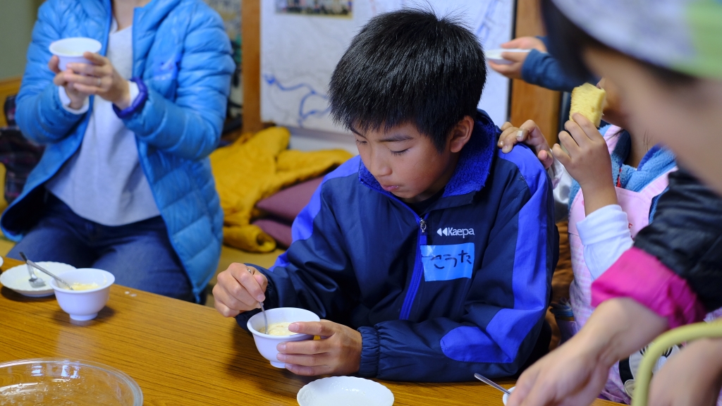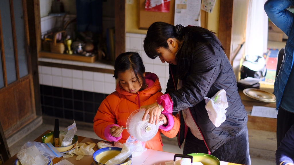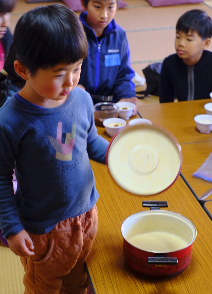 お子様方も「え、これが豆腐になるの・・・・?」と言わんばかりの慎重な面持ちで作っていました。