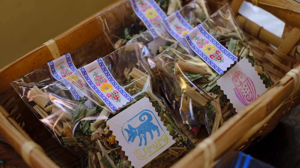 用意していただいた道具や石鹸に練り込む材料、そしてオリジナルハーブティなど。