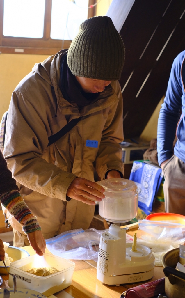 選別作業に一区切りをつけ、ランチを挟んで「豆腐作り」です。
