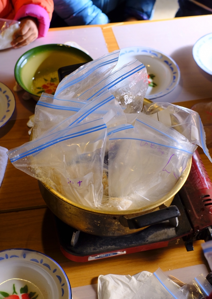 今回は、「冬のとうふづくり」ということで、温かいまま食べる「寄せ豆腐」を作りました。