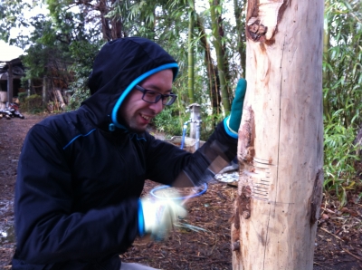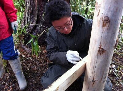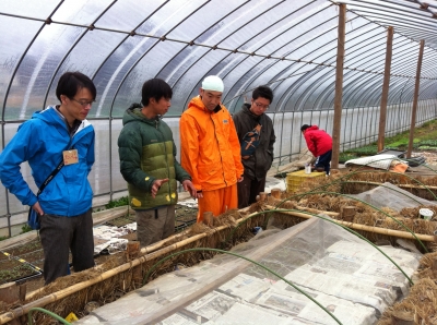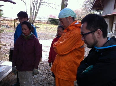 今年は苗を育てるのにとても苦労しました。 冬の寒さが例年よりも低かった為に中々苗が育たない上に、芽が出たと思った矢先にネズミに食べられてしまい種を撒き直したりと、大変に厳しい冬となりました。 写真はネズミ対策をした苗の説明をするスタッフの泰斗さん。