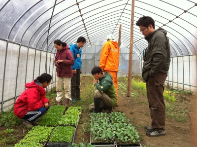 午前中は畑見学。ぴたらファームではようやく桜が咲き始めました。遅い春の便りです。そんな中、すくすくと育つ野菜達。