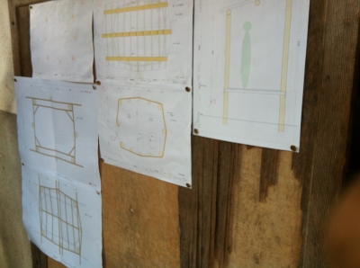 こちらは今回のコンポストトイレの図面です。イベントの第一回目に考えたデザインを基に、今回の講師、Team Bean政建築設計事務所の遠藤さんが作成してくれました。 凄い!!