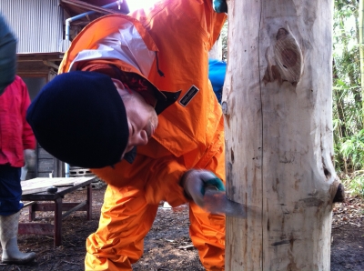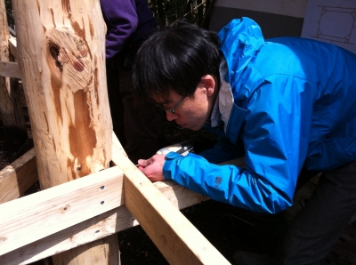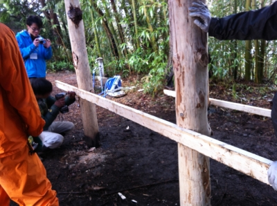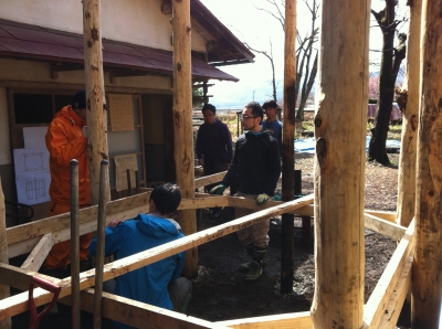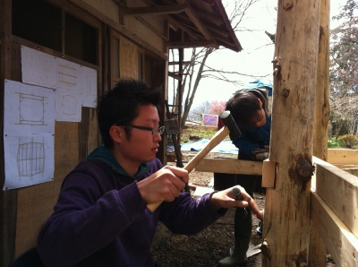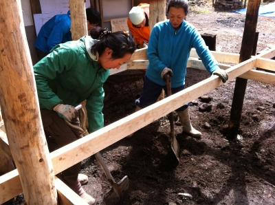 おやつ後も引き続き土台作り。パワフルな大工仕事をしてくれたハジさん。
