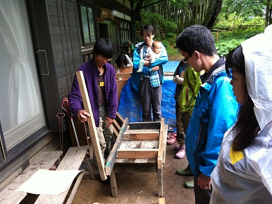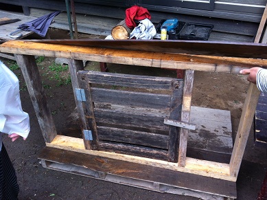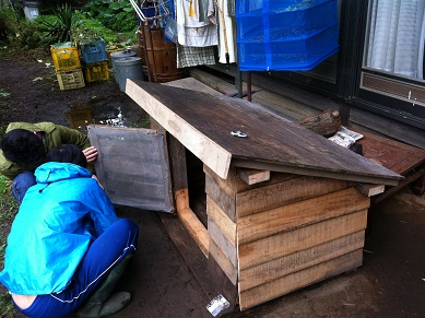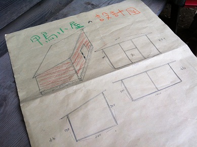まずは完成させた子ガモ用の小屋を田んぼに設置します。