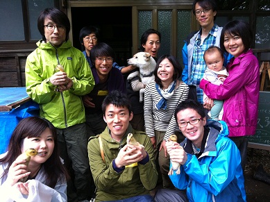田んぼの周りをぐるりと囲えたところでお茶タイム!