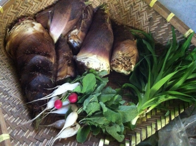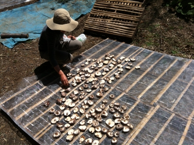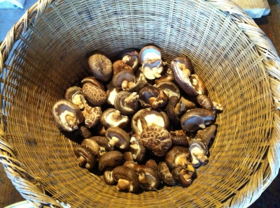 お昼はぴたら邸の竹やぶで原木栽培をしているしいたけの収穫を行いました。