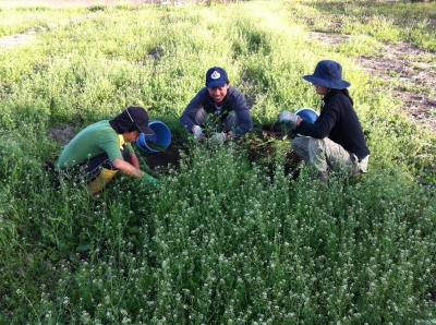 今日は天気にも恵まれ、青空の下畑作業を行いました。