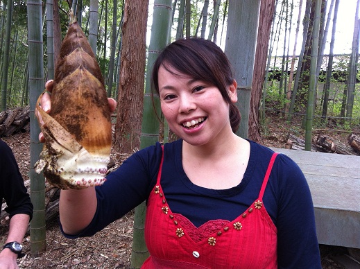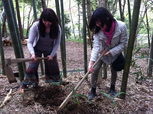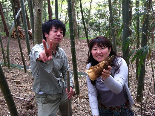 お昼ご飯を終えて、家族仲良くタケノコ掘りを体験しました。