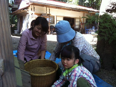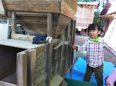 さて、昼食後は小麦の唐箕がけをしました。