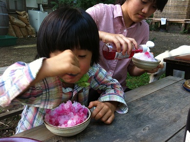 頑張って手伝ってくれたご褒美に、今日のおやつタイムは特製のかき氷を作りました。
