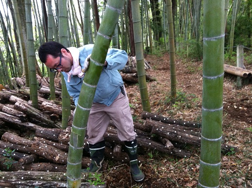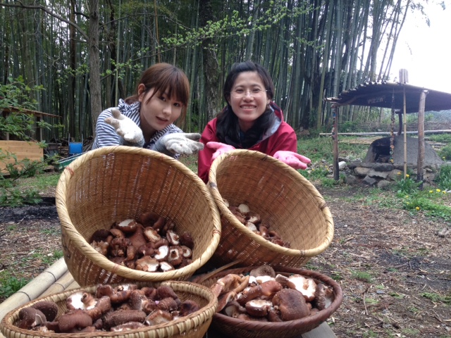 ランチの後は庭の竹林に行きタケノコ掘りとしいたけ狩りを行ないました。