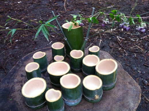 切り落とした竹を適度な大きさにぶつ切りしてぐい飲みを作っていきます。
