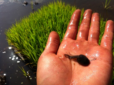 このおたまじゃくしが成長してカエルになったら鳴き声で大合唱が行なわれるんですね(^^)