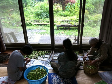 今日は庭で獲れた梅を加工して梅干し作り。縁側で世間話に花を咲かせて笑い声が家中に響き渡ります。
