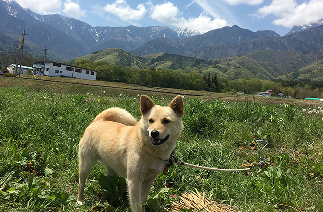 畑は、甲斐駒ヶ岳から鳳凰山にかけて屏風のように連なる峰が目の前に見える最高のロケーションです。