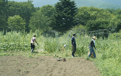 「晴耕雨読」とはまさに文字の通り、雨が降れば、畑には入れない。 そこには、土を大切にする思いが含まれていると私たちは思っています。 野菜作りを支える土には、無数の微生物が住み、無数の空気層があり、無数の栄養素を保持しています。雨上がりの畑の土は、空気層の部分にたくさんの水分を含んでいるので、 足を踏み入れてしまえば、その空気層を踏み潰して、土をグチャグチャにしてしまいます。大切な空気層を守るためにも、畑作業をしたい気持ちを少し抑え、なるべく畑が乾いてから畑に入ります。 そんな風に、自然のリズムに逆らわず、自然のリズムに沿って作物と向き合っています。